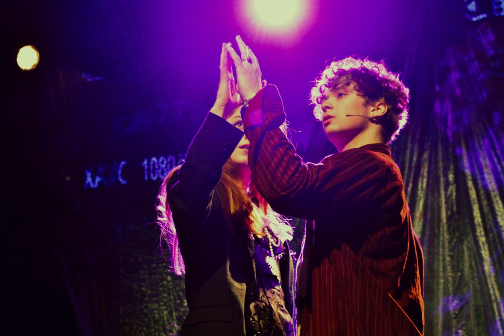 Shaun Hamilton’s pathos slammed my eyes shut during Moritz Stiefel’s suicide, as did it draw tears. Gemima Iseka-Bekano as Ilse is still as brilliant as she was when I first saw her in EUSOG’s HMS Pinafore in 2023, or even coming into fuller bloom of her talents. I will not be surprised to find her as a mighty oak in the West End in the coming decade, if that is what she wishes. I really cannot criticise anything about any of the actors, beyond their troupe dancing, occasionally their singing (due to the complexities of the songs), and perhaps their ability to portray 15-year-olds with sufficient conviction, but the order was towering, for six months rehearsals beside degrees (and slings-and-arrows). In this case, as musical theatre, the show is certainly not to professional standard, but it’s pretty d*mn close. As experimental theatre, as a play, it’s excellent. Everything that could be done with thought, was done with intricate, incisive thought, for this is a play of symbolism. From the choreographed clock hands, to the broken rosary in the switch scene, to the individualised grunge costumes (made possible in collaboration with Glasgow’s House of Black), each pointing to a different personality, each with a common theme. Also important to mention is the choice to work with University of Edinburgh sexual consent and safety campaign Sex? On Campus!.